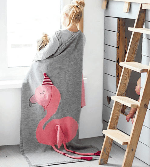 Ce plaid sera le remède idéal à la grisaille hivernale en apportant soleil et chaleur à la chambre de votre princesse ! Le flamant rose est un animal typique du sud de la France, qui se distingue par sa belle couleur rosée. C’est un animal que l’on n’a pas l’habitude de voir dans les chambres d’enfants et qui changera des dinosaures et licornes habituelles ! Alliant originalité et douceur, il apportera une touche unique à votre décoration intérieure.