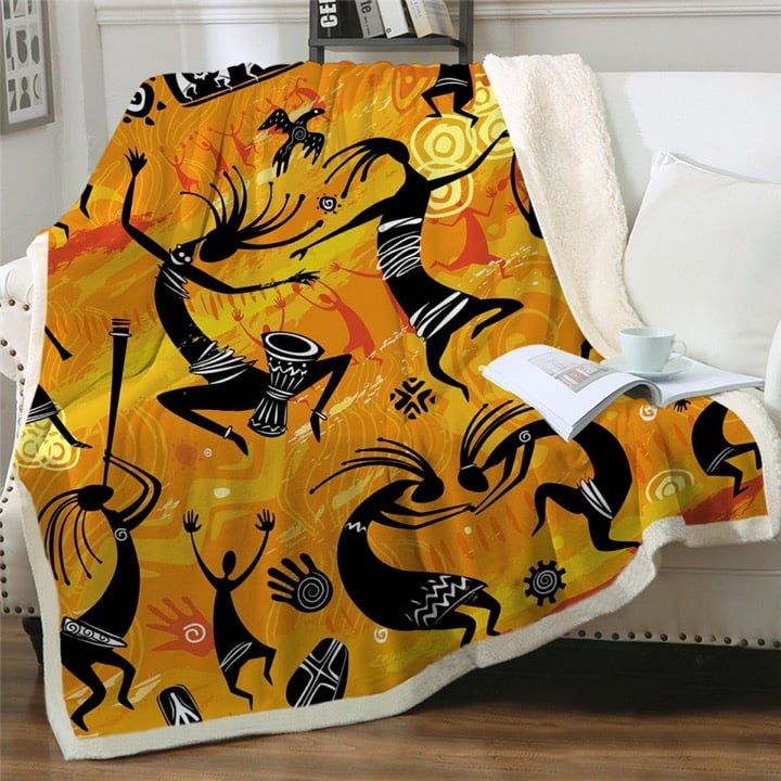 Il est temps de sourire et de faire la fête ! Assurément, tout le monde s’accordera pour dire que nos quotidiens enfermés, confinés et distanciés ne permet guère l’amusement et la joie. Cependant, il faut parvenir à retrouver le sourire autrement ! Avec ce magnifique plaid représentant un instant festif ritualisé de peuples africains, mettez de la couleur dans votre quotidien et gardez toujours auprès de vous un petit bout de bonheur collectif. Ne vous en faites pas, rien ne dure éternellement, et vous pourrez bientôt retourner vous aussi faire la fête comme les personnages joyeux et ombragés de votre couverture !