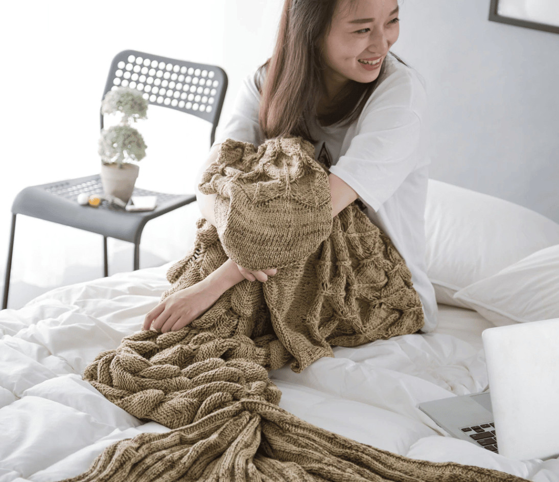 Notre plaid sirène tricoté café est un magnifique plaid en tricot finement ouvragé. Il est orné de torsades et d’une queue de sirène, ce qui lui donne un look féminin et sophistiqué. Ce plaid est parfait pour les soirées d’hiver devant la cheminée ou pour se détendre sur le canapé. Doux au toucher et très confortable, vous allez adorer vous blottir dedans !